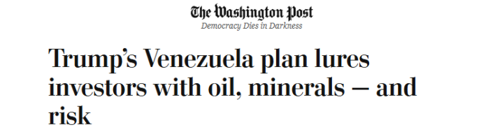 综合外媒报道,对冲基金扎堆押注委国债务与资源;“唐罗主义”版图隐现,南美多国甚至格陵兰岛皆成资本“投机热土”。一场军事行动,已然沦为地缘政治突变催生的“暴利游戏”,更揭开了美国延续多年、如今彻底撕下伪装的资源帝国主义新一页。