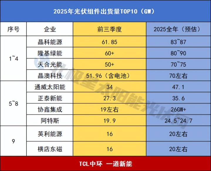 金沙电玩城app 搅局! 2025年光伏组件出货量TOP10