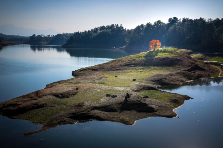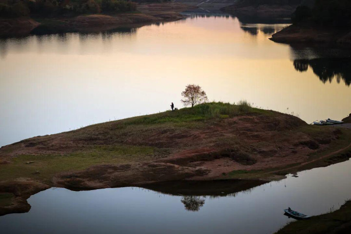 今天,我想带你走进湘潭县花石镇的花石水库。在那里,碧波环绕之中,一座小小的丹霞山岛悄然伫立,岛上唯有一棵乌桕树孤独而坚定地生长着。