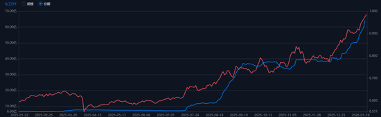 化工ETF(516020)近1年份额增长情况(蓝线份额,红线价格)