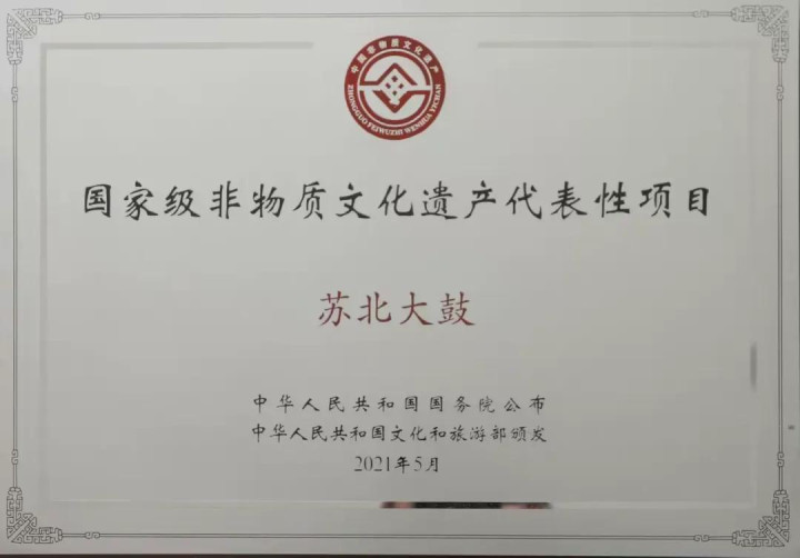 苏北大鼓于2021年被国务院公布为第五批国家级非物质文化遗产代表性项目,是宿迁市首个独立入选国家级非物质文化遗产代表性名录项目。