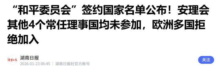 湖南日报——“和平委员会”签约国家名单公布!安理会其他4个常任理事国均未参加,欧洲多国拒绝加入